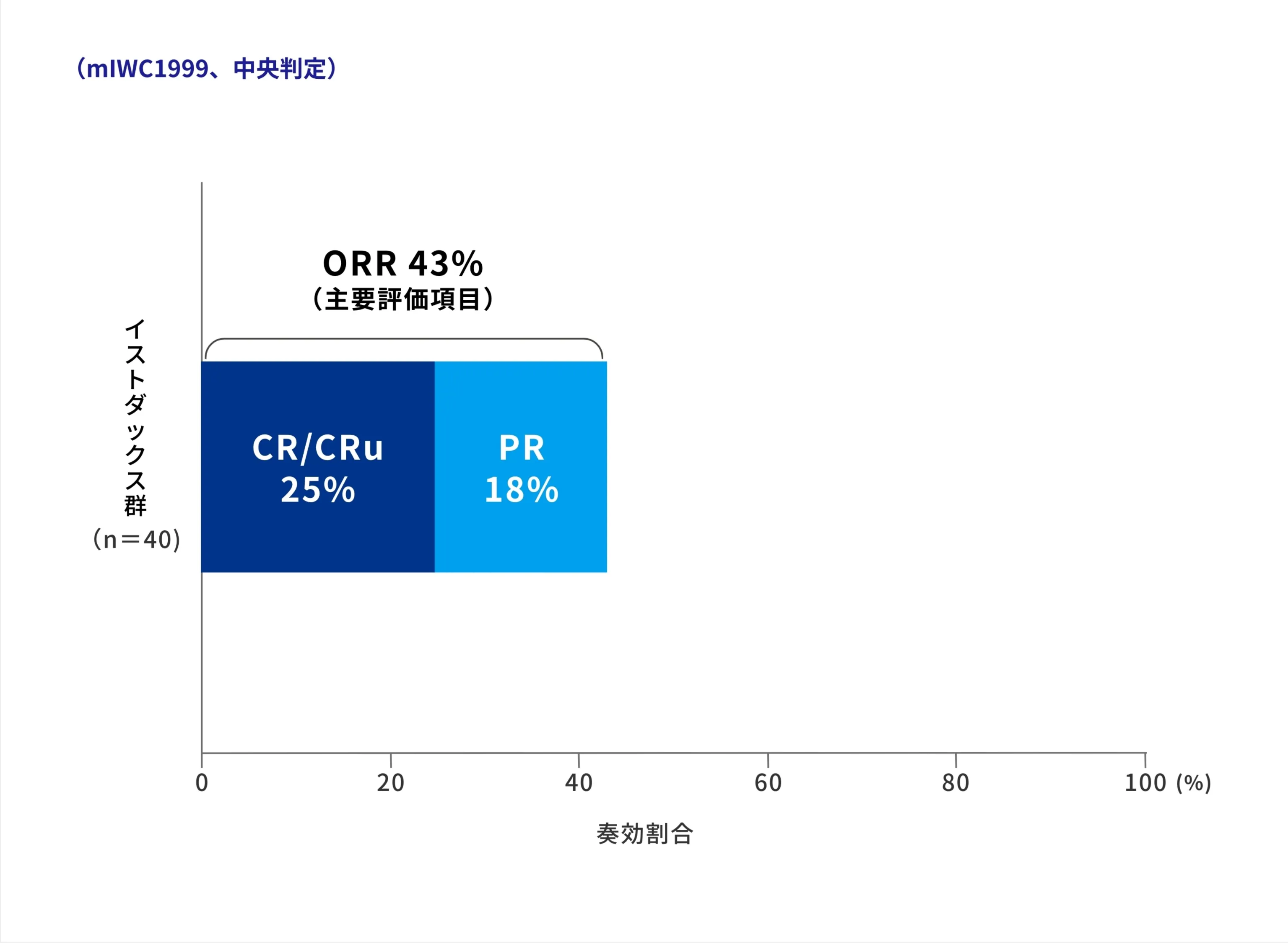 PR以上の奏効割合は43%でした。また、完全奏効割合は25%でした。